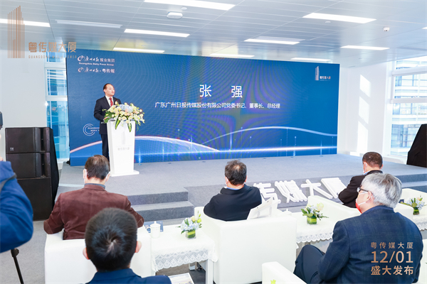 在发布仪式上,广州日报报业集团有关负责人首先感谢广州市委、市政府和海珠区委、区政府对广州日报和粤传媒的关爱和大力支持,并表示粤传媒大厦发展要紧扣中心、服务大局。广州日报将充分发挥主流媒体和文化的优势,充分发挥粤传媒大厦区位和产业优势,助推建设和发展广州“四大文化品牌”,全力支持粤传媒大厦引进重点数字文化企业、支持粤传媒大力发展数字文化产业,助力琶洲打造“数字+会展+总部+高端商贸”融合发展产业新高地。同时,将在空间布局、资源整合、功能设施建设上大力支持配合海珠区的建设规划,全力支持琶洲西区率先实现珠江沿岸高质量发展目标。