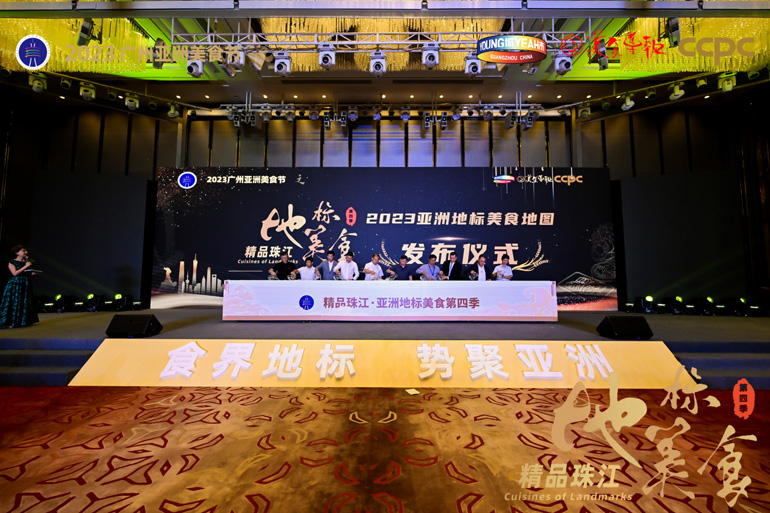 2023广州亚洲美食节“精品珠江•地标美食”第四季启动以来,“地标美食”的评选活动得到业内各界的高度关注和支持,吸引了广州大批各具特色的餐饮企业热情参与。活动当天,2023“精品珠江•地标美食”第四季名单与最新的地标美食地图在广州保利洲际酒店重磅发布,30余家经过专业评审团的精心遴选的餐饮品牌入选2023“精品珠江•地标美食”,而“寻味湾区•地标美食地图”则通过现场的270°环绕屏展示,成为全场焦点。