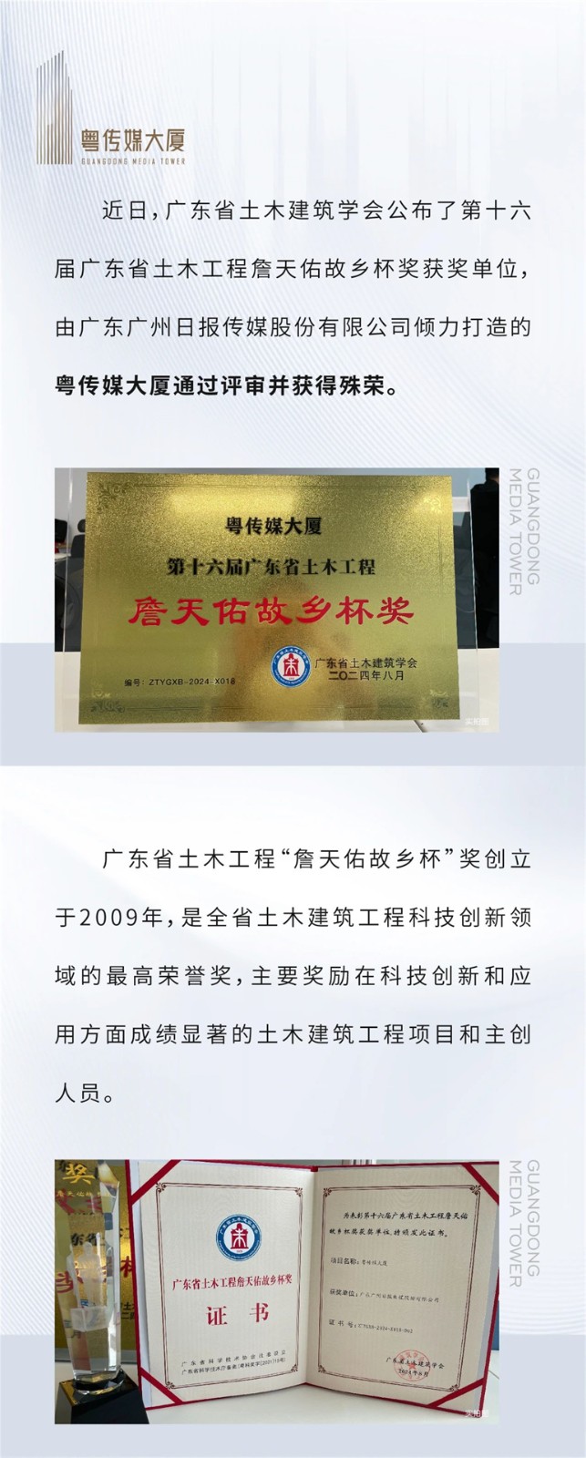 喜报!粤传媒大厦荣获“广东省土木工程詹天佑故乡杯奖”