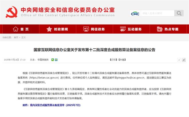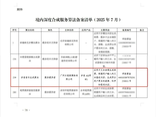 近日中央网信办发布第十二批深度合成服务算法备案信息,广州日报G视频结合视频生产需求研发的妙音音乐生成算法正式通过算法备案(网信算备440105897878201250011号)。